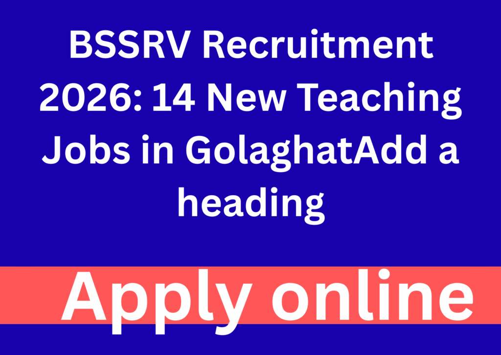 Birangana Sati Sadhani Rajyik Vishwavidyalaya (BSSRV), Golaghat has released an official recruitment notification for 14 positions, including Professor, Associate Professor, and Assistant Professor. Eligible candidates can apply online and must also submit a hard copy of their application by the deadline.